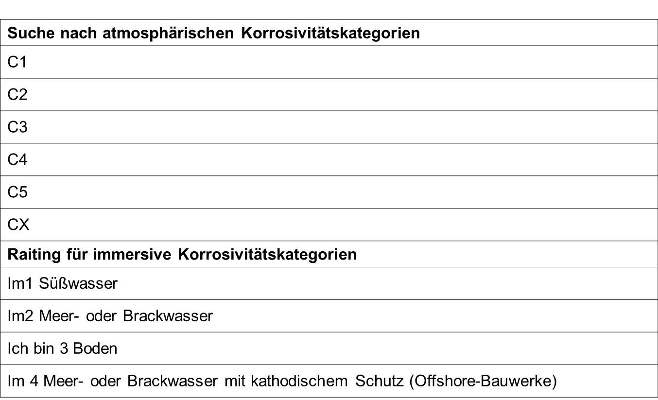 | C5-M | Küstenbereiche mit hoher Salzbelastung, Offshore-Plattformen |